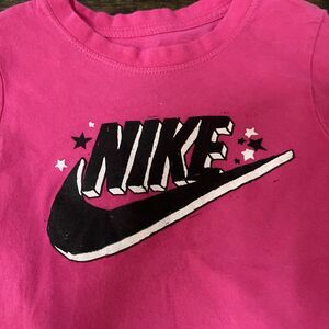 Nike girls youth pink t-shirt in size 6X. Classic athletic style, perfect for casual wear, school, or sports activities.