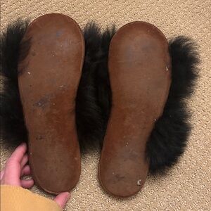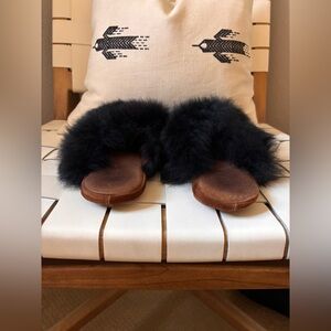 OZMA Women's Black Baby Alpaca Furry Slippers Small