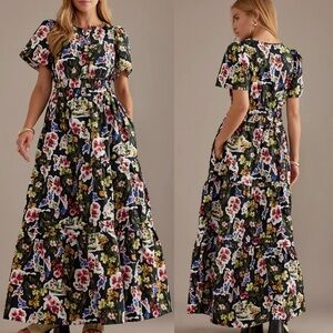Size XL NWOT Anthropologie Somerset Maxi Dress in Black Floral Print. Beautiful colors, cotton material. Length 55”