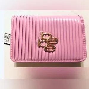 Bebe Nadine Pleats Flap Crossbody Bag Purse Pink Logo 7.5x5x2 Clutch - NWT