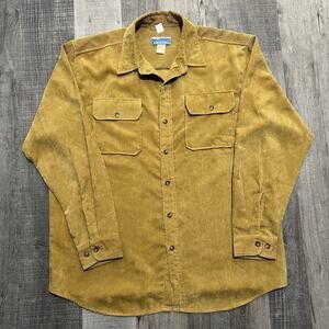 VTG Stag Hill Corduroy Button Shirt Mens Golden Yellow Cord Two Pocket Casual