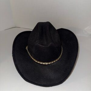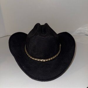 Stylish black cowboy hat with a decorative band. Perfect for adding a rugged touch to any outfit.