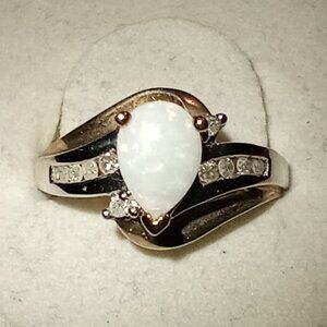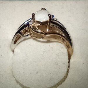 LAST ONE -- 10Kt Two-Tone Gold Pear-Shaped Opal & Diamond Ring