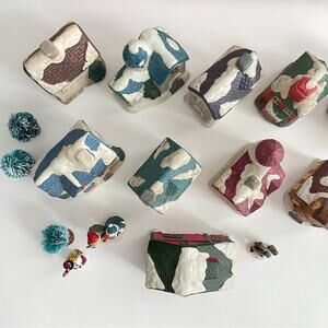 In excellent condition. Doesn’t come with light strand. 10 houses, bottle brush trees and other decor. Perfect for you holiday Christmas decor.