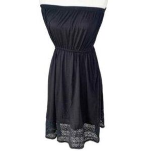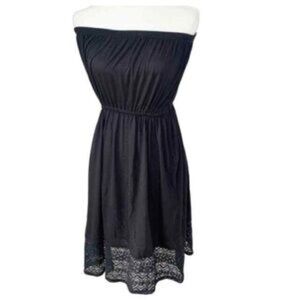 This elegant black strapless dress is perfect for any occasion. The classic design features a delicate lace hem, adding a touch of sophistication. Ideal for evening events or a night out.