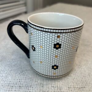 ANTHROPOLOGIE Bistro Tile Black & Gold Initial R Coffee Tea Mug EC