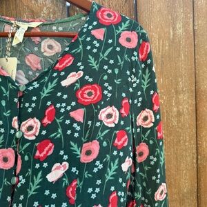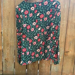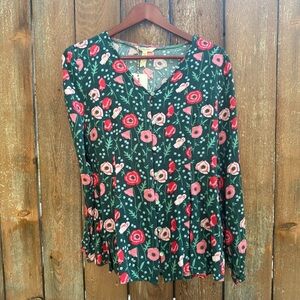 MATILDA JANE Women Pink Green Floral Yesteryear Tunic Peplum Blouse Size Medium