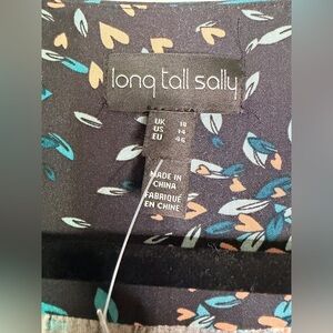 Stylish black dress featuring teal and orange leaf designs. Perfect for any occasion.