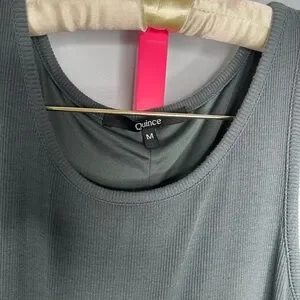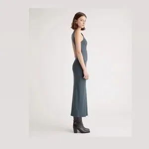 Quince Tencel Rib Knit Dark Olive Tank Midi Dress size medium