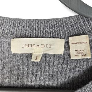 Inhabit Gray Crew Neck 100% Merino Wool Hi Low Hem Exposed Seams Size Small