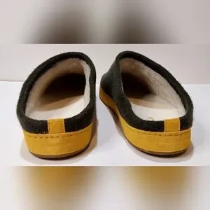 The green color, solid pattern, and round toe shape add a touch of style to these mule slippers.