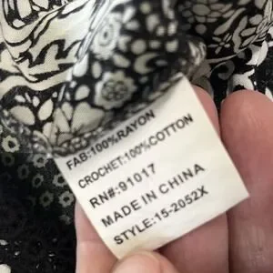 Solitaire Top Womens 1X Black White Print Boho Crochet Trim Peasant Curvy Shape