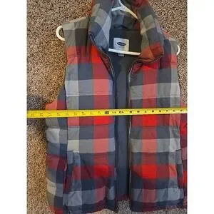 The Old Navy Puffer Vest is a stylish and practical addition to any woman's winter wardrobe. This red plaid quilted vest features a full zip closure, making it easy to layer over any outfit. The polyester blend outer shell and insulated lining provide warmth and comfort, while the sleeveless design and regular fit offer a flattering silhouette. The vest also includes pockets and a soft shell construction, making it perfect for casual occasions in the colder months. Machine washable and easy to care for, this vest combines style and functionality seamlessly.