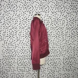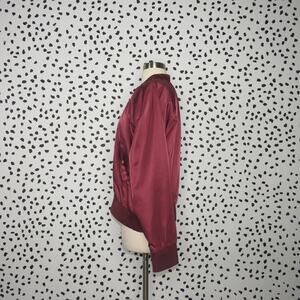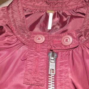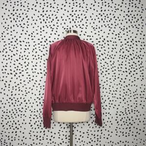 Free People Satin Zip Up Wine Midnight Bomber Jacket