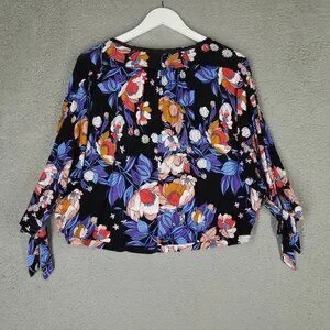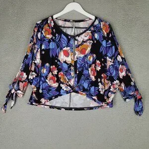 Free People Crop Blouse Women's XS Floral Boho Festival Oversized Resort Vacay