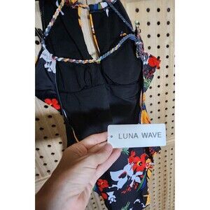 Luna Wave Women's One Piece Swimsuit Halter Neck Hollow Front Ruched Beach Wear