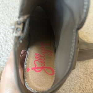 Chic gray boots with peep-toe design. Stylish buckle detail. Perfect for versatile wear.