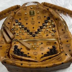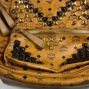 MCM Tan and Gold Studded Backpack