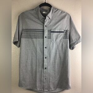 Travis Mathew Men’s Medium Shirt Casual Short Sleeve Button Front Gray & Navy