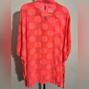 Stylish sheer blouse with large polka dots. Vibrant orange color.