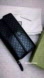 Sleek black leather wallet with embossed Gucci pattern. Includes branded box and dust bag.