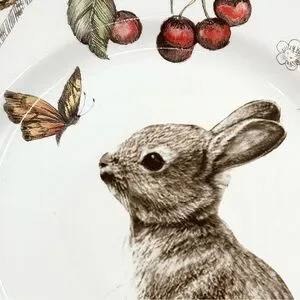 This charming porcelain plate by Pier 1 Imports features a sweet bunny rabbit surrounded by flowers and a butterfly. Showcase during the Spring or decorate a Cottagecore kitchen. Any way you use it she will bring a smile to your face.