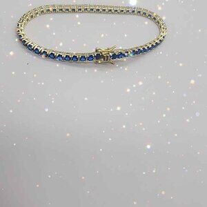 Add timeless sparkle to your jewelry collection with this elegant 925 sterling silver tennis bracelet, featuring brilliant blue cubic zirconia stones. Each stone measures 3MM, offering a refined yet eye-catching shine.