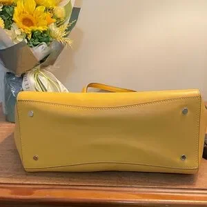 Chic yellow tote by Kate Spade. Sleek design with ample space. Ideal for daily use. Dents in bag due to the way this item was stored. Barely used. (Reasonable offers will be considered).