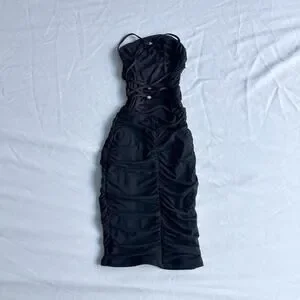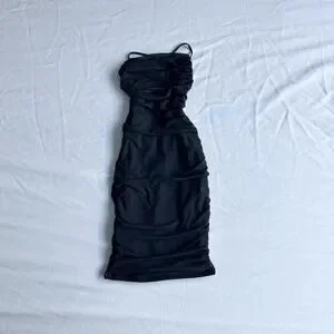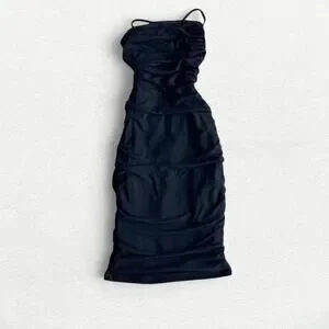 Oh Polly Everlasting Romance Cowl Neck Ruched Mini Dress in Black