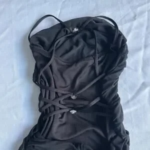 Strappy back cowl neck mini dress