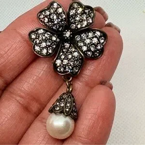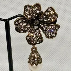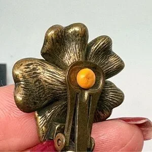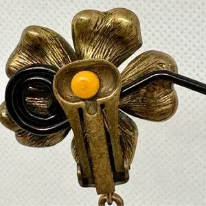 #VintageEarrings #LuckyCharm #PearlDropEarrings #CloverJewelry #StatementEarrings #RetroStyle #BridalAccessories #AntiqueBrass #VintageGlam #PoshVintage