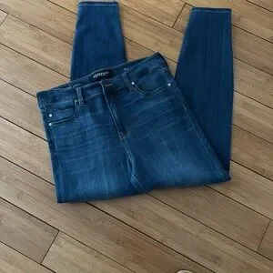 Stylish high-rise jeans by Liverpool. Dark blue denim with classic stitching. Perfect for any occasion.