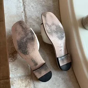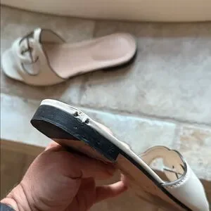 Elegant Gucci slides with iconic logo design. Perfect for versatile styling. Slight damage not really noticeable when worn.