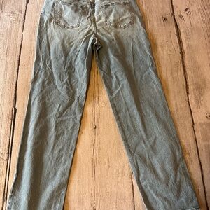 Gently worn, great shape. Light wash denim with a straight leg fit, high rise waist, and long inseam. Perfect everyday jeans — super comfy and flattering. No flaws.