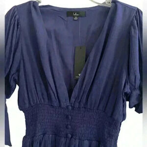 LuLus NWOT Flowy Deep V-Neck Navy Blue Dress Size Medium