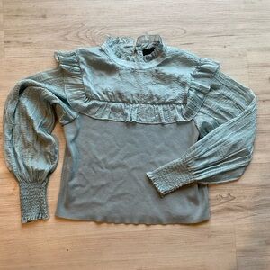 Excellent condition Broadway 38 long sleeve blouse with ruffles. Size large