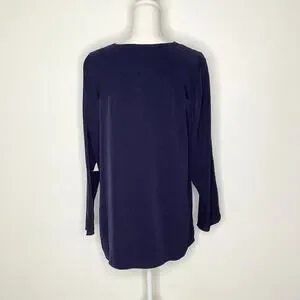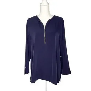 Chico's Navy Blue Long Sleeve Zipper Detail Blouse Top 2 NWT