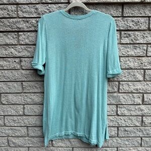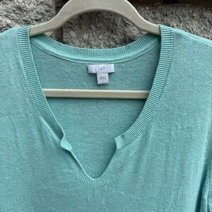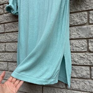 J. Jill Linen Blend Knit Tunic Shirt Turquoise Cuffed Short Sleeves Large