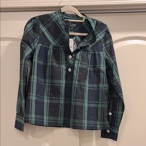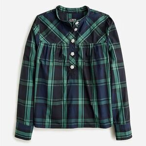 NWT J Crew Organic Cotton Fresco Top Jewel Buttons Green Blue Tartan Plaid