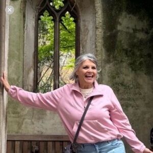 Stylish crop pink quarter-zip pullover with front pocket. Perfect for casual wear.