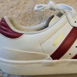 Good Used Condition, Classic Men's Adidas Busenitz White & Red leather Sneakers. Size 11. Tread in great condition.