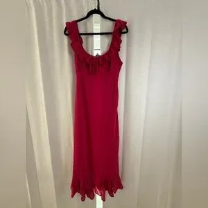 Loucia Pink Ruffle Midi Dress | Romantic Date Night, Cocktail Holiday NWT Size M
