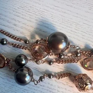 This stunning necklace features a blend of gold and brown tones, perfect for adding a touch of elegance to any outfit. Its intricate design and versatile colors make it a must-have accessory.