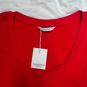 NWT MANGOPop Red Long Sleeve V-Neck Bodysuit Size S