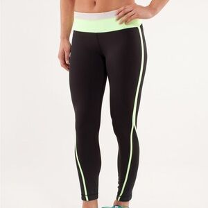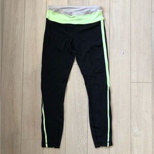 Lululemon Run Pace Tight Leggings in Black & Neon Green Size 4