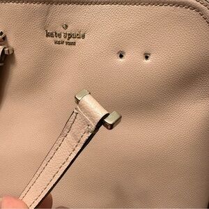 Kate Spade Patterson Drive Pink Dome Satchel Purse. This purse has some damage (could be fixed if you are handy like that or could take it to a repair shop). The handle is broken, but could be attached, and the purse handle leather part is peeling off. All flaws shown in photos. Price reflects condition. Heavily used and loved!