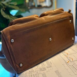If you know, you know. It’s better with time…it’s ment to be rugged traveled the world look and this one certainly has. Minor imperfections , stained liner, but no major water marks on leather.
