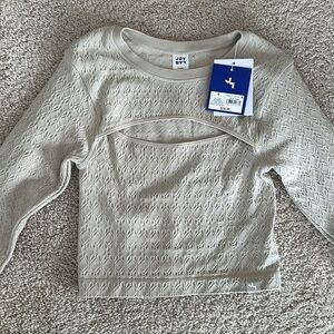 NWT Joy Lab Cream Tan Textured Cut Out Crop Workout Top with Thumb Holes Small
