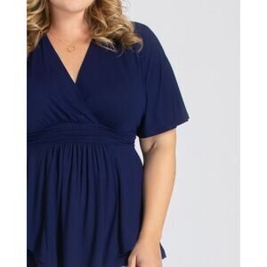 Kiyonna Navy Blue Top Promenade Style 1X Flutter Sleeves Empire Waist Feminine