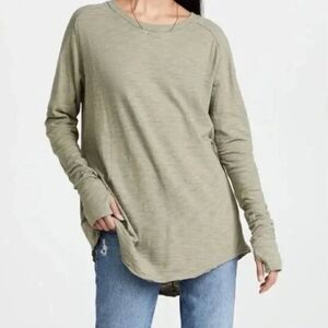 Free People Washed Army Green Arden Tee Size Medium NWOT